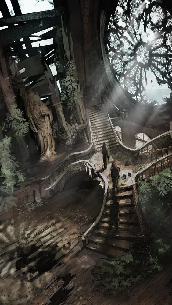 This shot relies mainly on RBD destruction of the windows, cracking of the floors, and the pyro shapes of the mists flooding in. A character may or may not be included, and either would be fighting the mists or drawing them in.